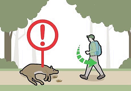 Leave an area immediately if you see a fresh kill. A bear will stay close to a carcass to defend it, so if you see a recent kill, leave as quietly and as soon as possible. Even if you can't see the bear, chances are it's still nearby. Slowly leave the area, but do not run away, or the bear might chase you. When you get back, report the kill to the nearest ranger station.
