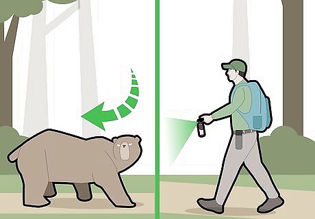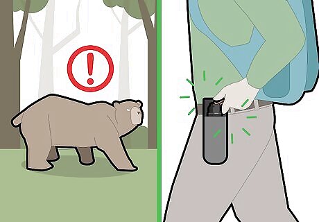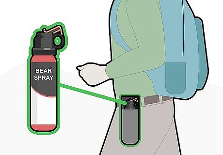 Don't go into bear country alone. Bears are less likely to attack a group, so bring a couple of friends along if you’re going to be hiking or camping in an area with bears. Stay close to your group, and don't wander off. In addition, each person should have their own bear spray. If you see a bear, stand close together so you'll appear bigger.