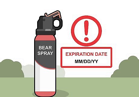Check the expiration date on the can. Bear spray loses its effectiveness after a set amount of time, so each canister should be labeled with an expiration date. Before you head outdoors, check the date on the can to ensure it’s still good. If the expiration date has passed or if it’s getting close, replace it with a new can of bear spray. A can of bear spray typically lasts around 4 years. To dispose of expired bear spray, check if there’s a bear spray recycling program near you. If there’s not, dispose of it the next time there’s a hazardous material pickup in your area. You should be able to find this information on your local waste management agency’s website.