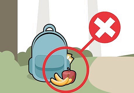 Don’t leave food unattended. Even if you just have a couple of granola bars in your pack, never leave your food where a bear can reach it. Bears learn quickly when it comes to food sources, so if a bear finds one backpack with some yummy treats, it will be more likely to confront someone carrying a pack in the future. If you’re camping, hang your food high in a tree to keep it out of a bear’s reach.
