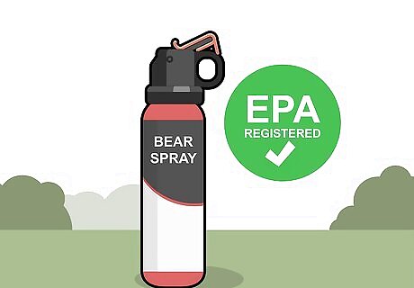 Opt for an EPA-registered bear spray for reliable quality. There are a number of different sprays on the market, but if it’s not registered with the EPA, there’s no guarantee that the product is formulated for maximum efficiency. Choose a spray that is specifically designed for use against bears, with an EPA registration number displayed on the front of the can. You can purchase bear spray at stores that sell sporting goods, as well as online. Double-check a product’s EPA registration if you’re buying bear spray online.
