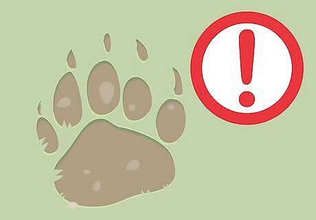Watch for bear tracks or scat while you're hiking. Anytime you’re outdoors, it’s important to be aware of your surroundings. Look for bear signs, like fresh tracks or scat or signs that a large animal has been digging nearby. Other signs include rocks that have been rolled over and logs that have been torn apart.