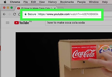 Select the video's URL. Click the address of the video that's in the bar at the top of the browser window. It will look something like https://www.youtube.com/watch.