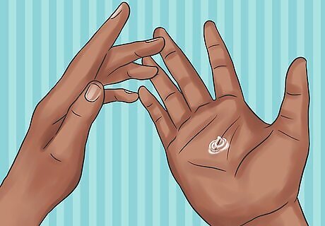 Rub a small dollop of gel between your palms. You only need a nickel-sized squirt of gel for one section of shoulder-length hair. Rub it between your hands to soften it.