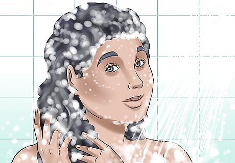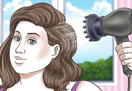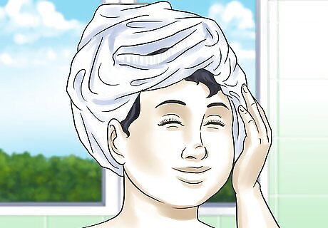 Wrap hair in a cotton T-shirt. This tends to create less frizz than a towel or blow-drying. Let your hair dry in the T-shirt until slightly damp.
