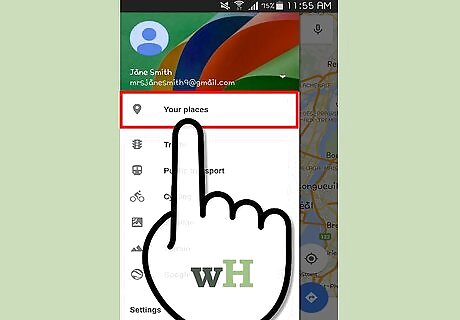 Tap "Your Places." This is found at the very top of the menu. This will show places that you have saved or reviewed.
