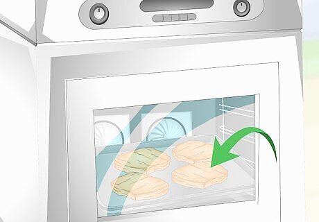 Broil your meals in the oven for a fast way to cook. Broiling is a high-heat option that doesn’t require you to add any additional oils or fats to your dish. Use lean cuts of meat, like chicken and fish, and heartier vegetables like squash and onion. Make sure you preheat the broiler before putting your dish in the oven or broiler drawer. Meals take about 12-15 minutes to broil. Always check your meat with a meat thermometer before serving it. The risk with broiling foods is that because of the high heat level, the food can dry out quickly. That’s why it’s a good idea to use thinner, leaner cuts of meat so that they won’t take as long to cook.
