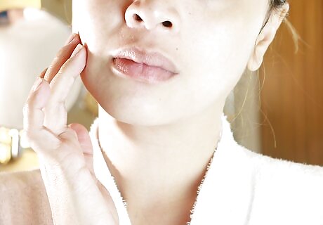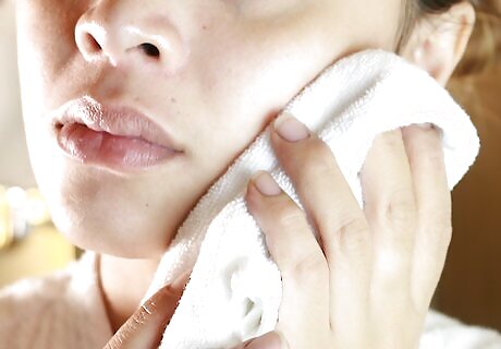 Pat dry with a clean, cotton towel. After you have rinsed the excess jojoba oil from your skin, use a clean cotton towel to pat your face dry. Do not rub your skin with the towel. Just pat your face with the towel until it is dry.