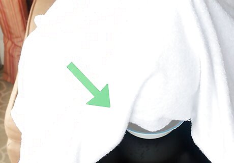 Cover your head with a large, clean cotton towel. After you have added the oils to the water, then cover your head with a towel and place your face over the steaming pot. Make sure to close your eyes and keep your face at least 12 inches away from the water. You want the heat to dilate your blood vessels and open up your pores, but if you are too close to the steam then it may damage your skin. Breathe normally and relax! Keep your face over the steam for 10 minutes. Rinse your face with lukewarm water and pat dry with a cotton towel. Don't rub your skin, just gently pat it dry.