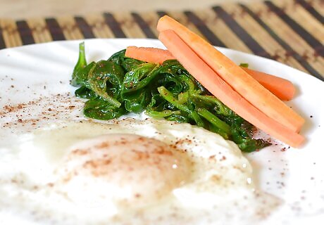 Get more skin-healthy nutrients. You can also ensure that you are getting the appropriate nutrients to keep your skin healthy. The vitamins that appear to be most important for the skin are vitamins A and D. In addition, consuming enough omega-3 fats may benefit people with acne. Foods high in Vitamin A include sweet potato, spinach, carrots, pumpkin, broccoli, red peppers, summer squash, cantaloupe, mangoes, apricots, black-eyed peas, beef liver, herring, salmon Foods high in Vitamin D include cod liver oil, salmon, tuna, milk, yogurt, cheese Food high in omega-3 fatty acids include flaxseeds and flaxseed oil, chia seeds, butternuts, walnuts, salmon, sardines, mackerel, whitefish, shad, basil, oregano, cloves, marjoram, spinach, sprouted radish seeds, chinese broccoli