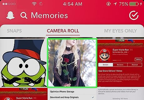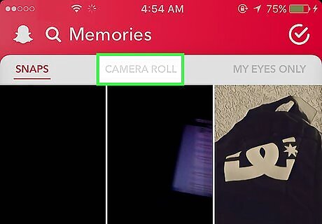 Tap Camera Roll. This is located near the top of the screen. If Snapchat does not already have access to your photos, it will prompt you to allow access. Grant Snapchat access to your photos.