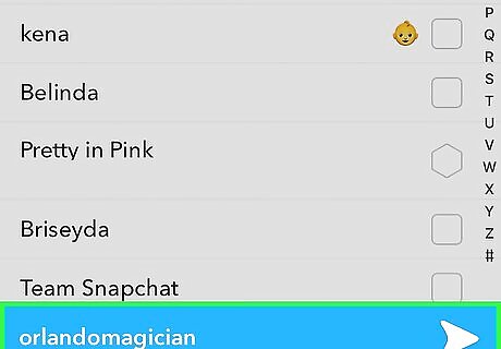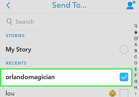 Tap on contacts to send the photo to. The names of recipients will turn blue once tapped. To add the snap to your Story instead of sending to a specific person, tap “My Story”.