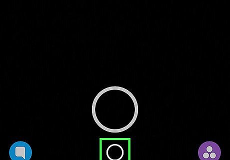 Tap the “Memories” icon. This is the small circle below the larger circle in the bottom center of the screen. Alternatively, you can swipe down on the screen.