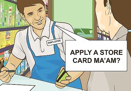 Apply in the store. Retail chains often require their employees to ask you if you would like to register for a store card when you check out. This gives you the opportunity to sign up for a card while you are shopping in the store. Simply provide the sales associate with your personal info and you will likely be approved on the spot. Since most people sign up for store cards to take advantage of an in-store discount while they are shopping, this is the most common way in which people get a store credit card.