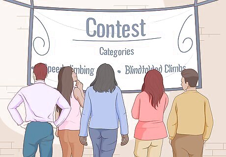 Have each set of climbers choose a contest for their team to compete in. Have the larger group participate in contests surrounding climbing speed, blindfolded climbs, or other assessments of climbing skill. Then, let each pair decide for themselves which competition they’ll take part in. This allows each pair to take ownership of their own success by realizing their own strengths and harnessing them to attempt to win the competition. For example, if one pair is particularly good at their verbal communication but otherwise aren’t very fast, allow them to choose whether they want to participate in the speed climbing race or the blindfolded climb competition. This will allow the pair to recognize that, as a team, they are better at the latter type of contest and so they’ll feel more confident about their ability to win the competition working together.