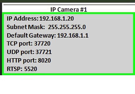 Set your IP settings. In this example we have set the following network settings for Camera #1 and #2.b|IP table]]