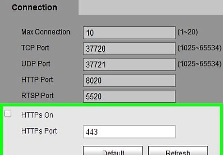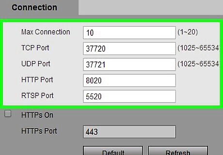 Configure the TCP/UDP ports. Open Network > Connection menu. Apart from https port which is optional to use, you need to forward the other four ports respectively in your modem. But before proceeding to the next step (if no NVR server is used) make sure that you have set unique TCP, UDP, HTTP, and RTSP port numbers to each of the IP cameras. Unique port numbers help the modem to properly recognize the proper IP camera for which the requested traffic is deemed to, thus routing would be accomplished correctly.