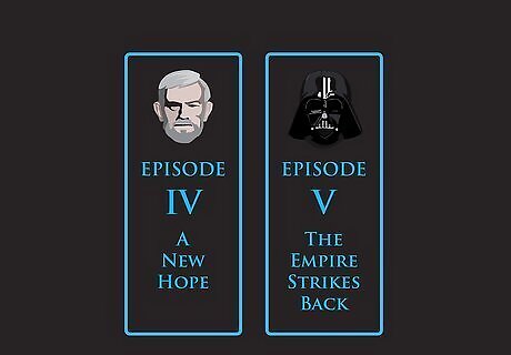 Watch the first 2 films in the original trilogy. To follow the Rinster order, watch A New Hope first. Then, follow it up with The Empire Strikes Back. Once you’ve completed the first 2 films in the original trilogy, hold off on the final film and set it aside for later.