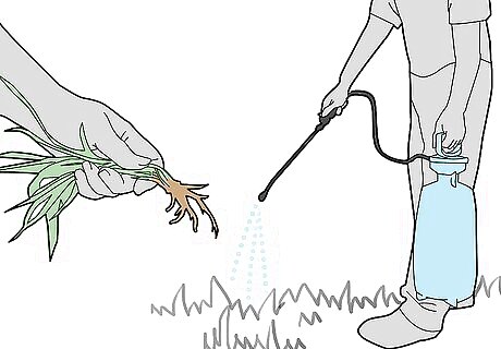 Pull weeds frequently. Weeds not only take up space in your yard, they also compete for water and nutrients in the soil. When you pull up weeds, be sure that you dig deep enough to remove the entire root system, as pulling out the surface sprouts will not effectively kill the weed. If you must use chemical herbicides on your weeds, use spot applications instead of a broad, whole-yard application. Spraying the entire yard can harm many of the organisms that live in the soil and could potentially pollute your local groundwater system.