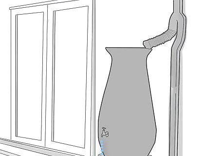 Recycle water. If you're watering your grass and not a vegetable or fruit garden, you may want to consider recycling water. Rainwater is safe to use, as it is the same water that would otherwise naturally irrigate your yard, though there may be restrictions on how rainwater is collected and harvested depending on where you live. Grey water, the gently-used and non-hazardous water from showers, dish sinks, and washing machine runoff, is not safe to drink but is generally considered safe to use for watering your lawn. If harvesting grey water, be sure to use environmentally-safe soaps and detergents. Try to use products that are considered "plant friendly," meaning they are free from salt, boron, and chlorine bleach. Try collecting rainwater. It's safe to use on any part of your lawn (including vegetable gardens), and it helps cut down on municipal water consumption. Some states in the U.S. have their own laws about the collection and use of rainwater. To find out any requirements or restrictions on collecting and using rainwater in your state, check the American Rainwater Catchment Systems Association website, click the Resources tab, and read the section titled Laws, Rules & Codes. An easy way to get started collecting rainwater is to simply arrange buckets or barrels under the downspout coming off your gutter. If you decide that collecting rainwater is something you'd like to pursue more actively, there are more advanced collection methods, like rain barrels.