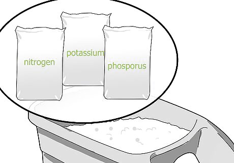Reduce how much you fertilize. Frequent fertilization of your yard may dry out the lawn. Using too much fertilizer or fertilizing too often will increase the need to water your lawn more frequently and in greater quantities. In late spring and early fall, use a fertilizer that is three parts nitrogen, one part phosphorus, and two parts potassium. This is ideal for maintaining a healthy lawn without needing to over water the grass. Opt for either slow-release fertilizer or a mixture of quick- and slow-release fertilizers for your lawn. Quick-release fertilizer releases all of the nitrogen rapidly, which will require more frequent applications over time. Follow the instructions and recommendations on your fertilizer's packaging label, or read online about how and when to properly apply fertilizer to your lawn.