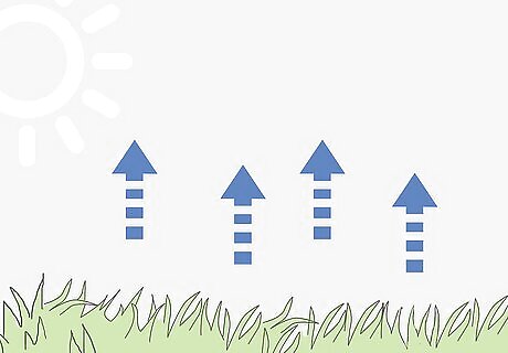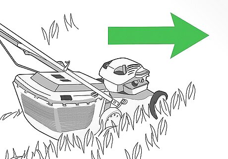 Adjust your mowing habits. Mowing the lawn is essential, but mowing too often or cutting the grass too low can dry out an otherwise healthy lawn. Using the same pattern to mow your lawn can also cause stress to the grass from the repeated wheel tracks that follow the same direction week after week. Try changing the direction(s) you mow in every time you cut the grass. It will help cut down on stress to the lawn, and may also prevent divots from forming in your pattern. Set your mower's wheels to the proper height. There is some variance of recommended heights depending on the type of grass in your yard. Tall Fescue grass, for example, should be kept no shorter than two and a half to three inches, while Bermuda grass should be kept between ¾ of an inch and 1½ inches.