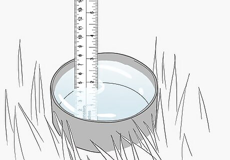 Measure your sprinkler output. One important factor in determining how often to water your lawn is how much water your sprinkler system puts out. You can measure the output of your sprinklers by arranging empty and cleaned tuna cans or cat food cans across your lawn. If you do not have empty cans, several coffee mugs will also work well. Then run the sprinklers for 20 minutes and use a ruler to measure the water depth across the yard. After 20 minutes, add all the depths together from each container in your yard and divide by the total number of containers to obtain an average for the whole yard. Then multiply that number (the total yard measurements over 20 minutes) by three to average your total sprinkler output per hour (60 minutes). Compare your yard's sprinkler output with your region's recommended monthly watering time. You can find a chart for your region by searching online.