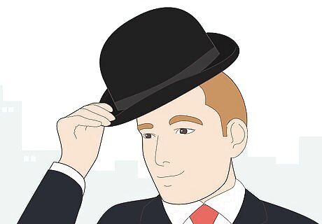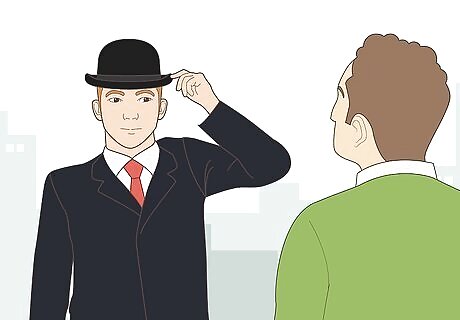 Touch the brim of your bowler hat to greet someone. If you see someone you recognize on the street or you walk past them in a hallway, touching the brim of your hat is an appropriate way to silently acknowledge and greet them. A gentle tap with your thumb and index finger lets them know that you see them. Use this greeting when you’re on the go and can’t stop to chat.