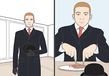 Tip your bowler hat to convey your gratitude. Grab your hat by the crown, raise it off of your head, and tip it forward whenever you want to say thanks to someone or show them your appreciation. This silent acknowledgment is a classy way to signify that you appreciate something that someone does for you. For example, you could thank someone who lets you go ahead of them while you’re driving by tipping your hat. Thanking your bartender at the pub when they give you a beer by tipping your hat is proper.