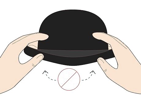 Do not bend or shape the brim or the crown of a bowler hat. The brim of a bowler hat is meant to be rigid, even, and straight. Bending or warping the brim will make the hat appear damaged and cheap. Once the brim of a bowler hat has been warped, it can’t be easily reset to it’s original condition. If the brim of your bowler hat is damaged, take it to a haberdashery to have it professionally repaired.