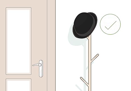 Hang your hat up in a cool location. Storing your bowler hat in a cool location will keep heat from warping it or shrinking the headband. Hang it up on the peg of a hat stand or on a hook in a closet or hallway to keep it from being crushed or squished while it’s in storage. A cool closet or a hallway out of direct sunlight are great places to hang your bowler hat.