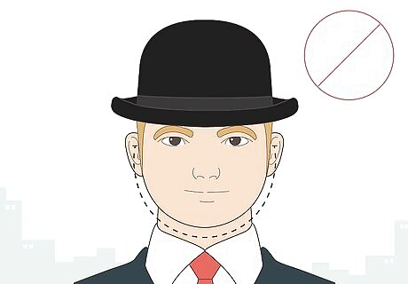 Avoid wearing a bowler hat if you have a rounded face. A bowler hat has a symmetrical shape and will bring attention to your rounded face and make your face appear fuller. Wear a hat with angles and an asymmetrical shape to contrast your rounded face. For example, fedoras and long sock hats will make your face seem longer and more angular, rather than full and round.Tip: If you have a rounded face and really want or need to wear a bowler hat, push the hat further back so it’s high on your hairline to make your face seem longer.