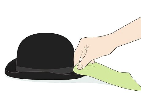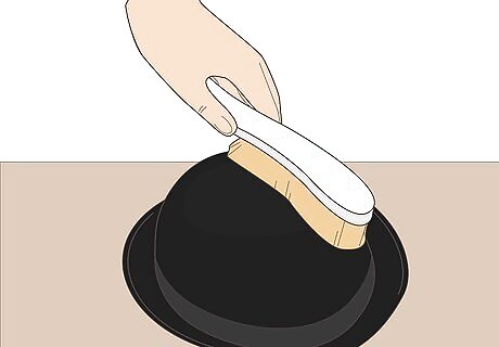 Use a hat brush to remove dirt from your hat. Brush your bowler hat gently with a hat brush to remove any dust or dirt that may be on the surface. Start at the front of the hat and work your way all around it so you don’t miss any spots. Brush in the same direction so the material looks smooth and consistent. You can find a hat brush at a local haberdashery or online.