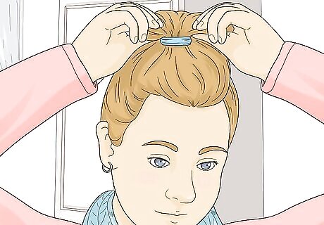 Separate the hair on the crown of your head with a clip. Pull back the top part of your hair just above your ears like you normally would to put your hair half-up. Put this hair into a loose bun and secure it back with a large hair clip. You can leave some hair hanging over your ears if you’d like to.