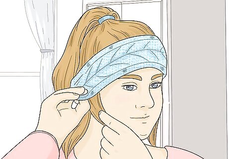 Move the headband up over your ears and around the back of your head. Grab the headband from around your neck and scoot it upward until it sits how you would normally wear it. Make sure that your hair is up high enough that it goes over the back of the headband. If your hair isn’t up high enough, you may not be able to see it behind the headband.