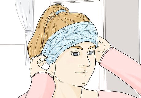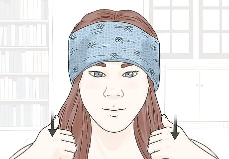 Place the headband over your ears and forehead. Pick your knitted headband up and put it over your head, making sure it touches your forehead and the very bottom of your skull. Position the headband so that it won’t slip off as you wear it throughout the day by keeping it over your ears and on top of your forehead. Keep all of your hair hanging loose underneath the headband. Most knitted headbands are pretty thick, so they shouldn’t slip off. However, a lot of movement throughout the day can sometimes knock them loose.