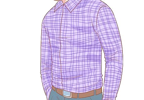 Choose a loose-fitting checked shirt for a casual, laid-back look. Let yourself feel unencumbered as you go throughout your day by choosing a shirt that doesn’t hug tight against your body. Leave it untucked and pair it with a pair of light-washed denim to maintain that casual vibe. Finish off the outfit with a pair of athletic or canvas shoes. When going for a casual look, pick a shirt made of a material that doesn’t wrinkle easily, like a blended microfiber shirt.