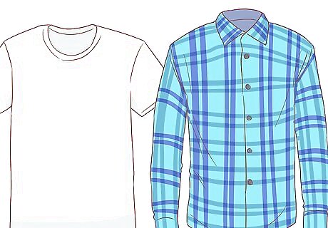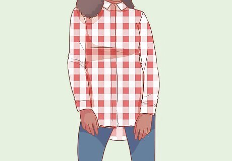 Put on an undershirt no matter what style of top you choose. Because almost all checked shirts button up in the front, it’s a good idea to wear an undershirt so people can’t see your bare skin through the gaps between the buttonholes. This can also help keep you warm, as wind won’t get through to your skin as easily. It also gives you the option to take off your checked shirt if it gets stained or if you get too warm. Wear a tank top, T-shirt, or long-sleeved shirt underneath your checked shirt, just depending on the sleeve length and what feels most comfortable to you.Tip: Pick an undershirt that is neutrally-toned or that complements the colors in your shirt since it most likely will be glimpsed through your top at some point.