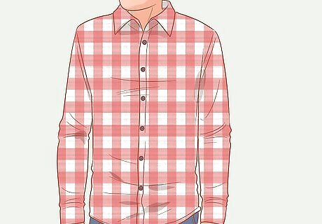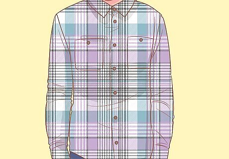Wear a thin, bright checked top in the spring and summer. For the warmer months, steer clear of heavy, long-sleeved flannel and instead opt for lightweight short-sleeved shirts. Pick brighter colors, like light blue, light green, white, and yellow, for a seasonally-appropriate color theme. For example, pair lightweight chinos with a short-sleeved checked top, and finish off your outfit with a pair of loafers. The great thing about checked shirts is that you can find them with long or short sleeves and for whatever season you’re in. Exploring the Different Styles of Checked Shirts: Buffalo: One of the more classic styles, two solid-colors with striped checks that intermix with the other squares. Tartan: Expressive and colorful, often with colored stitching intersecting some of the squares. Windowpane: Contrasting large white squares paired with a darker material. Gingham: A tight, neat pattern made of very small squares.