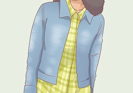 Put a blazer or suit jacket over top of your shirt for a more stylized look. For dressier occasions, look for a fitted jacket or blazer to add to your outfit. Pick a solid-colored jacket and keep the rest of your outfit more neutrally-toned. Button up the blazer or jacket for a more put-together look, or leave it open for a neat, yet slightly more casual, look. If your blazer or jacket is bulky and doesn’t fit quite right, take it to a tailor to have it adjusted. This will make you look much neater.