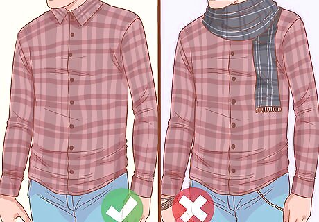 Keep the rest of your outfit subtle so as not to visually overwhelm. Fashion experts across the board agree: when wearing a checked shirt, it’s best to wear neutrally-toned pants and simple shoes and to keep the accessories to a minimum. Otherwise, you risk looking busy. Choose bottoms that are a solid color, like black, white, khaki, forest green, or gray, or stick with classic denim. Wear shoes that aren’t bright or multi-colored. If you wear a scarf, pick one that is a single-tone rather than one that is patterned. If you can, match the color of the scarf to a color in your shirt; or, pick something that is more muted, like gray, tan, black, or navy.
