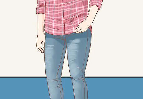 Tuck in your shirt for dressy events to look more put-together. To automatically make your outfit a little more dressed up, go ahead and tuck that shirt into your pants. Tuck in the entire shirt, front and back, making sure to pull the shirt down tight so that it doesn’t poof around your waist. Make sure to wear pants that aren’t stained or ripped, and complete your outfit with a nice pair of loafers or dress shoes. For a more feminine look, try just tucking in the front of the shirt. Wear a belt with this look for a nice visual addition.