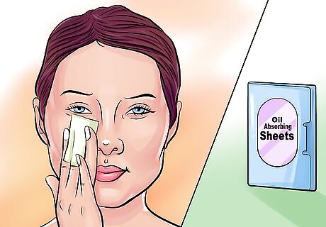 Use oil-blotting papers to remove shine. Inevitably, your face will become shiny and oily because of the humidity. When this happens, use blotters to remove shine and oil. Blot your T-zone and other oily areas on your face throughout the day. Blotters are great because they remove shine without removing makeup. Try to avoid using powders to eliminate shine. Powders only add more makeup to your face, which can make your face look cakey.