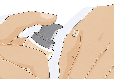Apply makeup with your fingertips. Pat or dab your makeup onto your skin with your fingertips. Makeup brushes can hold germs that can worsen your skin, and brushing makeup over scaly patches can leave makeup caught in flakes. Use your fingertips for better control and a cleaner application. Always wash your hands first!