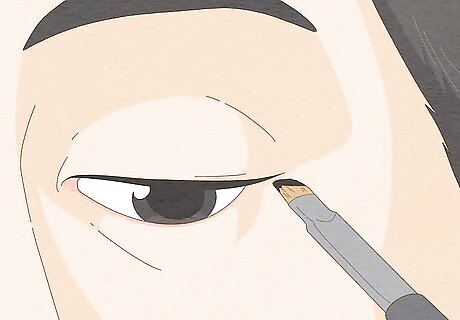 Define your eyes with gel liner and a flat brush. Use a gel liner rather than a pencil so you don’t have to pull on your skin as much, which can cause irritation. Use a flat liner brush to push the liner into your lashes. Your eyelids are very sensitive. If you use eye shadow, choose lighter colors with a matte finish – these are less likely to be irritating. Consider using only eyeliner and mascara and avoiding eye shadow altogether.