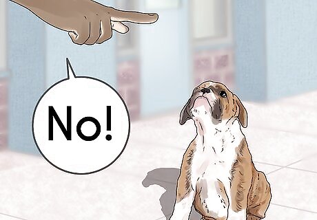 Begin setting boundaries. Puppies form habits that can be very hard to break later in life. If you don’t want your adult dog to enter a certain area of the house, don’t allow them to enter it as puppies. If you don’t want your adult dog to jump up and beg at the dining table, don’t allow them to do it as puppies. If your puppy does something you don’t want it to, say, “No” sternly. Set your puppy in its crate or another area where you want it to run and play. You should not leave anything the dog can take and destroy. Something dangerous for them to eat or very expensive. You should train them. You can keep them in one room for a while and then expand to another and then another, like introducing the house slowly. You should be with them to tell them about things they should not touch. Teach them to check with you before chewing or eating anything. You can give treats when they do so.