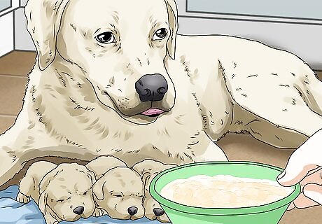 Keep your dog and puppy together. In its first days and weeks of life, your puppy will need constant care from its mother while awake. These early experiences will help your puppy develop positive socialization skills and stay healthy.