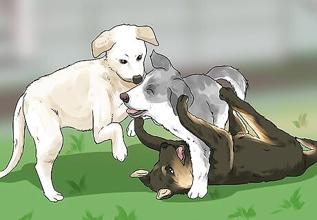 Socialize your puppy. If you have a single puppy and its only company is its mother, it will get lonely and bored without having another dog with an equal amount of energy. Contact friends who also have puppies so your pups can play together. Set up a playdate and let them romp in an enclosed space like the backyard. A variety of socialization experiences help your puppy develop a healthy temperament and a sense of self-confidence. However, do not take your pup to the dog park – you don’t know what sorts of dogs your puppy might encounter there.