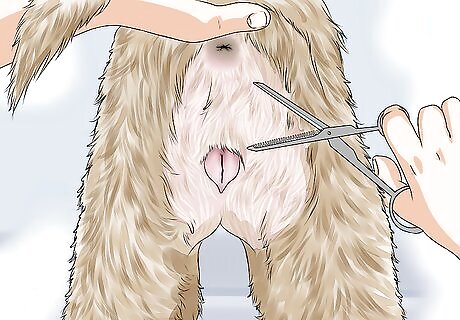 Clip your dog before it gives birth. About a week before your puppy’s expected birth date, you should clip your dog’s hair to prevent birth fluids – which are difficult to remove – from getting matted in it. Trim your dog’s hair around the vulva and belly using a pair of dog shears. The hair from the tail to ankles should be uniformly cut short.
