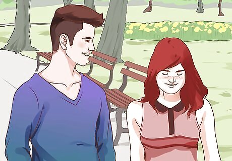 Smile. There has been an incredible amount of research put into the act of smiling. Suffice to say, whether or not you think you have a brilliant smile, there are few better ways to attract positive attention. When a girl smiles at a guy, it can also be construed as flirtatious. Smiling doesn't come naturally to everyone. If this is the case, practicing in your own time can go a long way. Smiling is also a great way to signal someone to approach you if that's what you want.